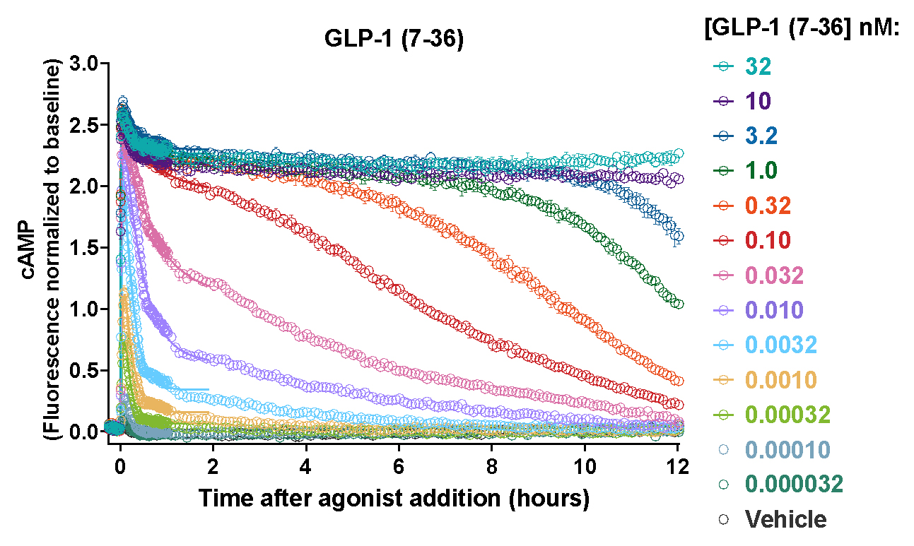 Measure prolonged signaling using fluorescent biosensors in living cells. The cADDis cAMP sensor enables continuous monitoring of GPCR signaling for up to 24 hours. Download a poster below.